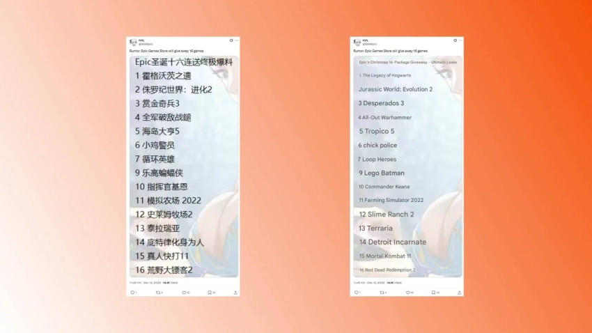 Но перевод на английский даёт представление о том, что это за игры. После Hogwarts Legacy, которую будут раздавать в EGS до 18 декабря, геймеров якобы ждут в том числе: