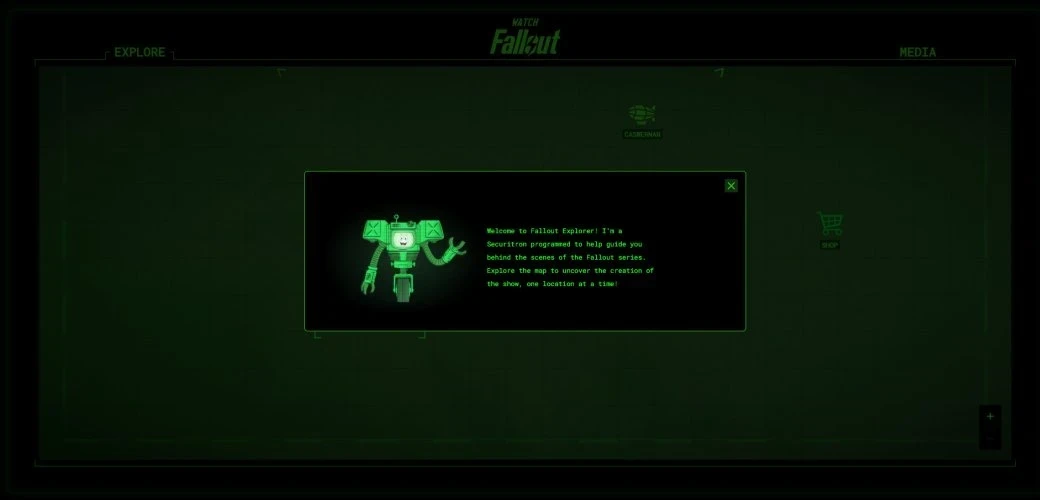 Увы, таймер вовсе не предназначался для показа чего-то новенького по Fallout. Он скрывал «программу» Fallout Explorer — путеводитель по закулисью съёмок сериала «Фоллаут». Фанаты могут перемещаться по «карте» и исследовать места, показанные в шоу. Например, Убежище 33 или пентхаус Мистера Хауса.