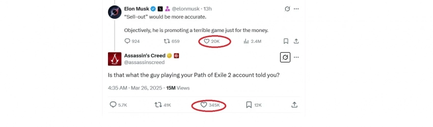 Маск пока не ответил Ubisoft, а пользователи X очевидно поддерживают в этом «противостоянии» последнюю. Взгляните на соотношение сердечек/лайков: 20 тыс у Маска и 345 тыс у Ubisoft!