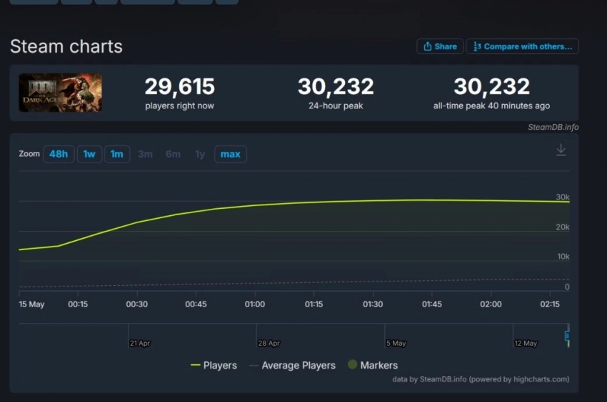 DOOM: The Dark Ages — 30 232 игроков одновременно.